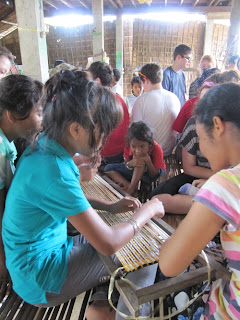 The next day we rode bicycles around the area to see the new school and visit an old staff member weaving.