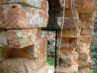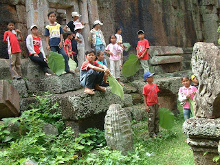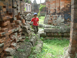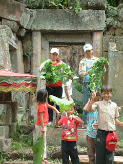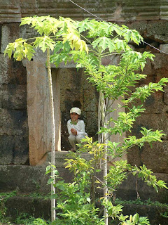 Coming back from the quicky mart. One of the fun things about this trip was; a lot of the trees had some sort of fruit on them. The girls where excited to find this vine in one of the fallen walls of the temple.