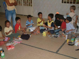 Yong in the middle waits for his gift. Darow is enjoying his.