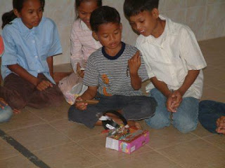 Yong in the middle waits for his gift. Darow is enjoying his.