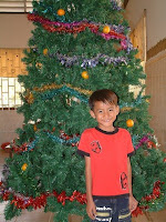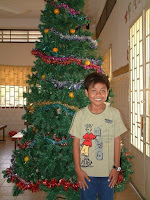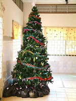 Ream and staff set up the tree we bought. We hung fruit on it this year which turned out quite nice.