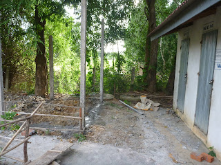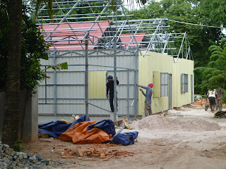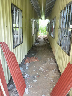 Each building now holds 2 classes. The middle wall is not up yet.