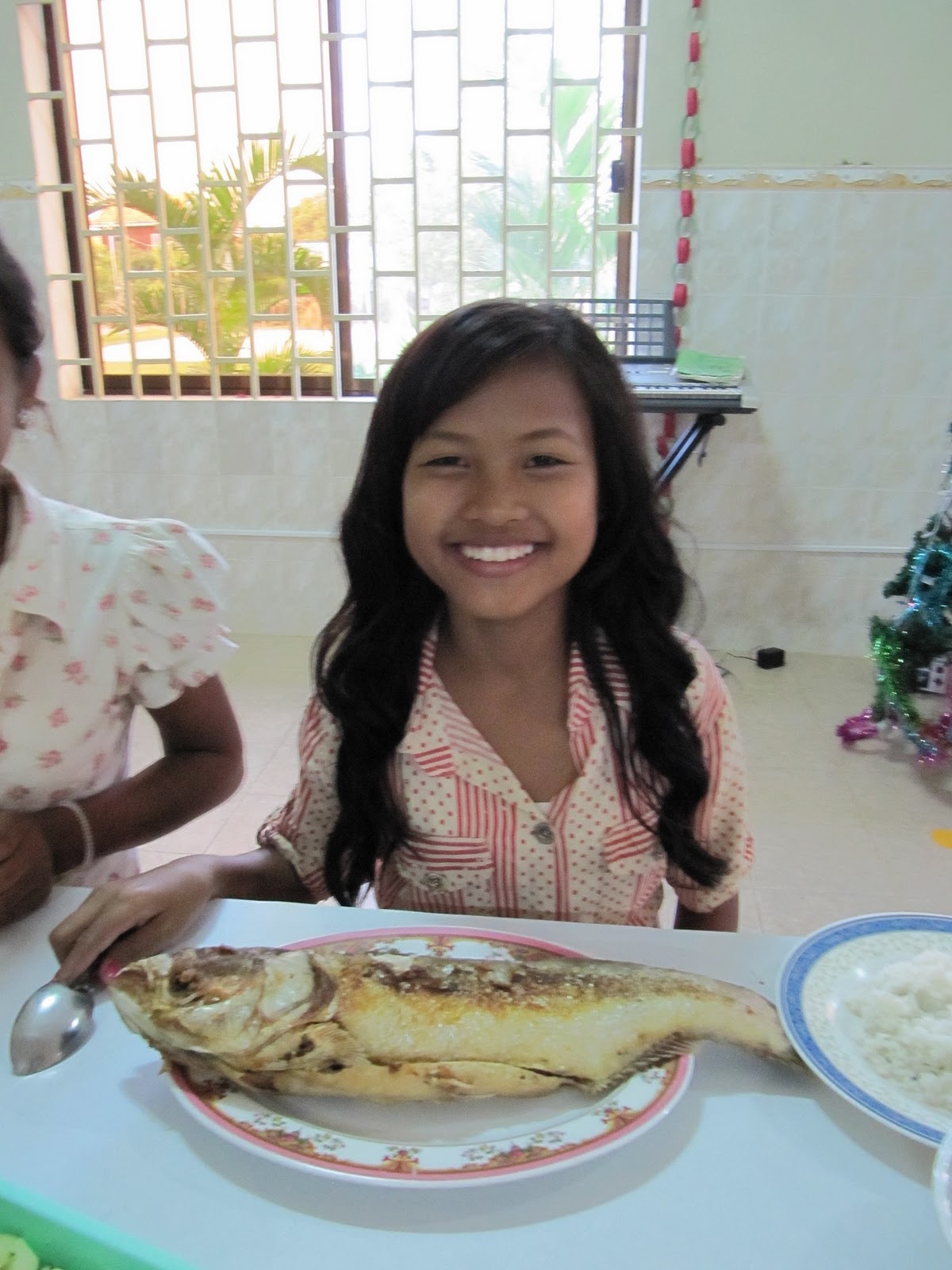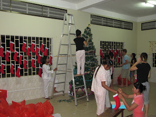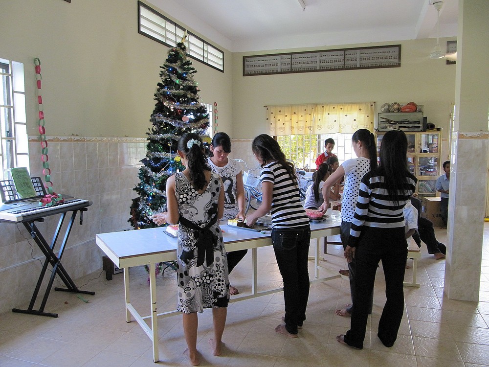 We bought some lights this year and someone sent us a string or two. The children awoke to see a nice surprise with the tree all lit up with color. This year we celebrated Christmas with 13 children who have never before celebrated Christmas and that have never even a Christmas gift before