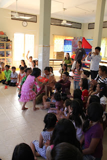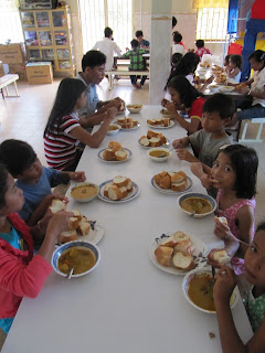The foreign guests made cookies for the children to decorate and eat.