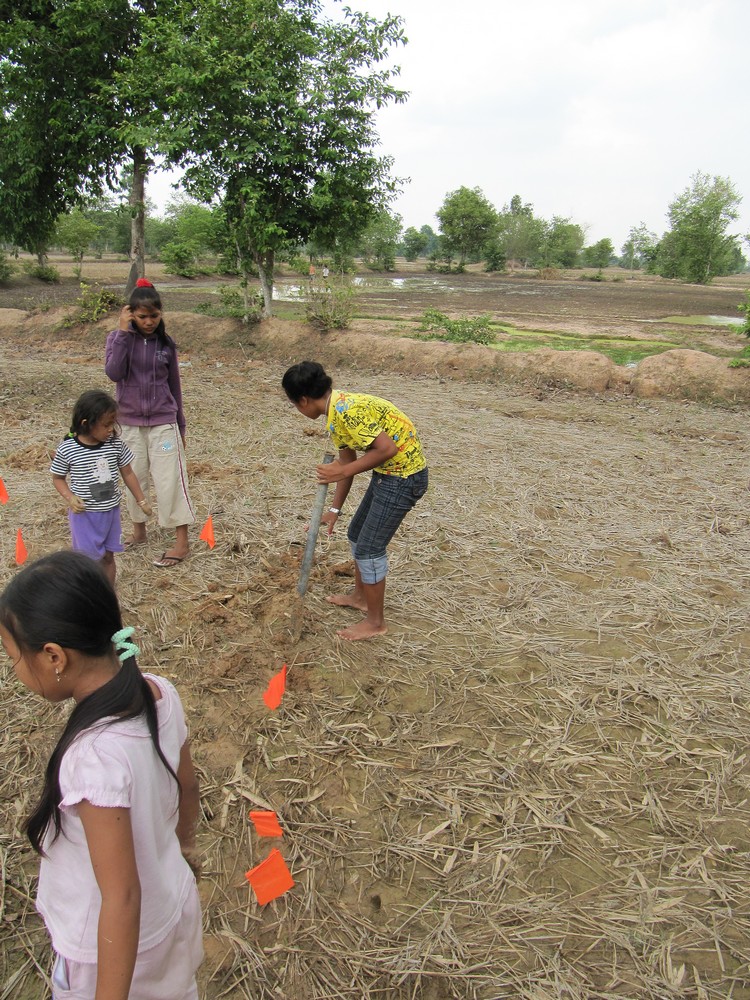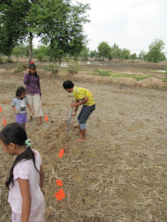 My yard flags came in handy.  Half the kids marked the holes while the others dug.