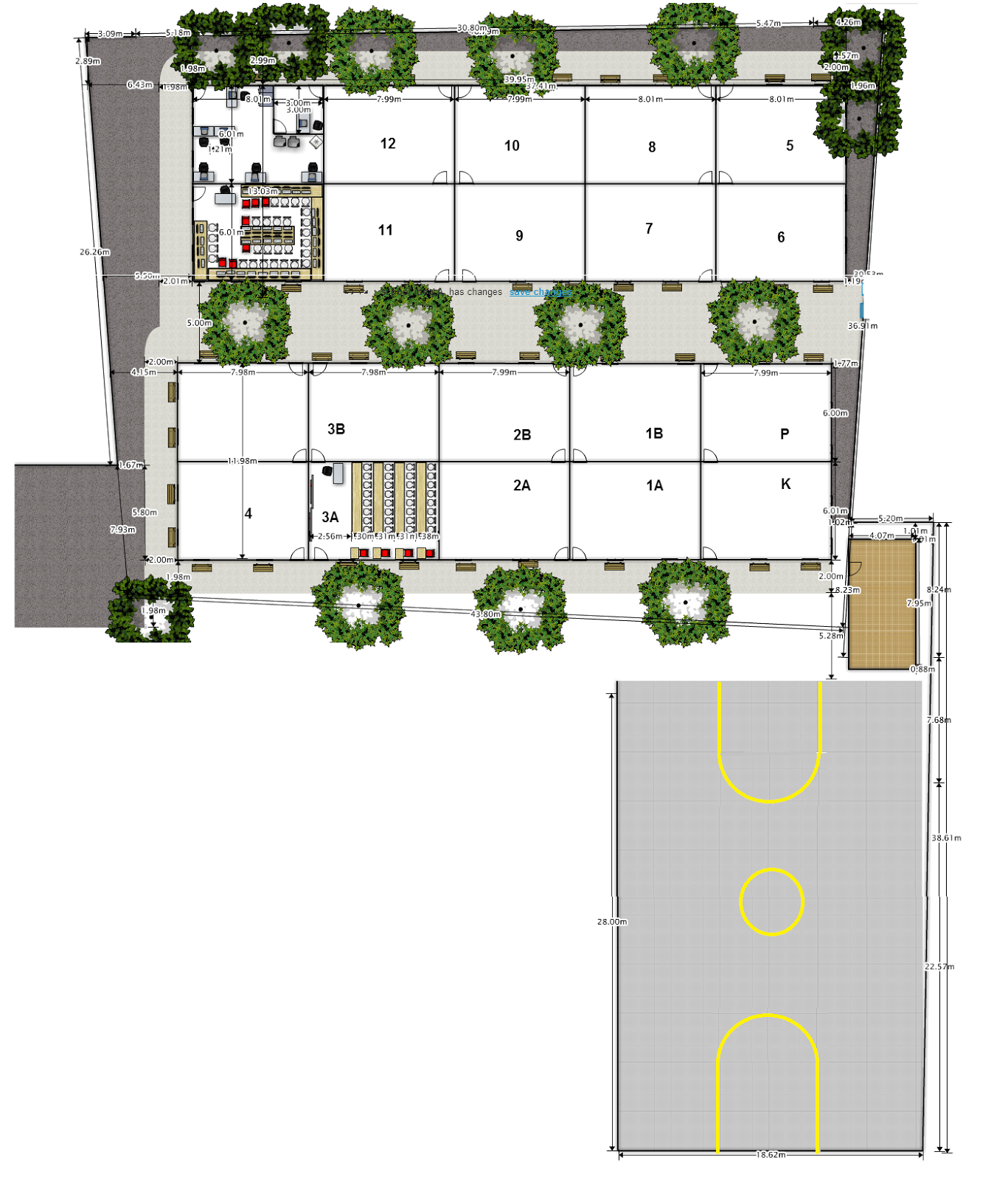 For units P, K, 1A, 1B, 2A, 2B we have applied for a Japaneses school grant. We hope to build these out of brick with a more permanent purpose and with the hopes of one day adding a second story if funds are approved.