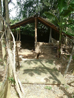 Then he showed us his gas tank. This tank located next to the bathroom takes the animal waste and collects the gases from it and it is used for lighting and cooking. He has had his tank for 3 years and it feeds gas to 3 houses with about 15 people.