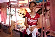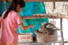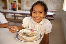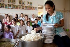 Caretaker Phon helping Mow serve