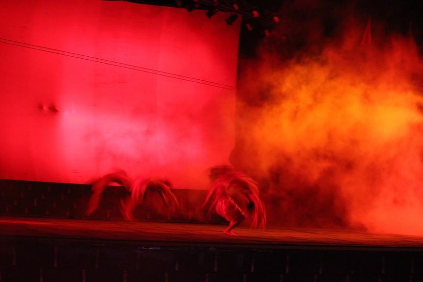 Every time I have been here the show has been different.  In the beginning I thought it was a little cheese.  At the end I was think there is no way I could do any of these tricks.  The guy below jump through the top hoop hands and feet first lands between and then jump hands first through the next hoop smoothly and effortlessly.