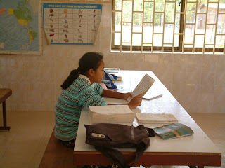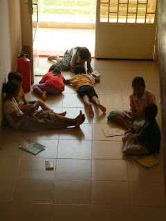 Studying for next year Channee, Tong and Tate. 1st grade get some help from 4th graders.