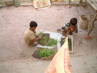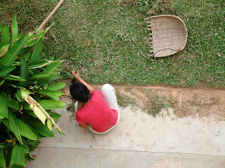 Ream trims the grass. Tong Rachana and Nyng get unchoi for animals.