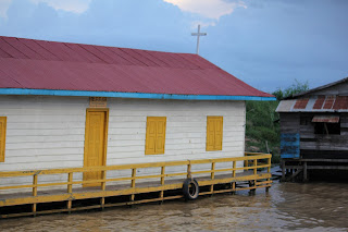 There are many boat people that live here on the sides of the river and out in the lake.   They have markets out there, a water filtering plant and churches and schools.