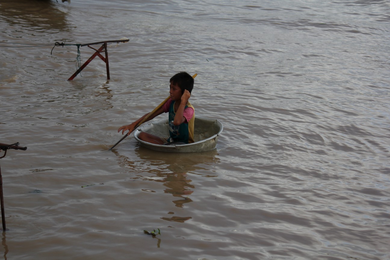 There are many boat people that live here on the sides of the river and out in the lake.   They have markets out there, a water filtering plant and churches and schools.