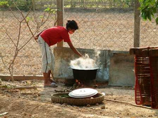 What is Nite making? Rice for the mother pig to help her out after the birth.