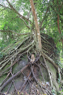 I was taking a picture of the tree over the rock before I saw the monkey.
