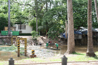 Once we got back into the city there is the river lined with the shacks of the poor.