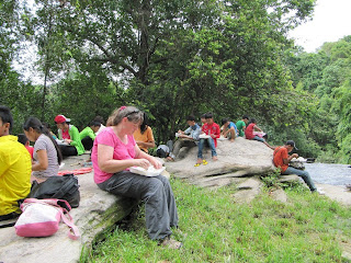 Shortly after the river we parked and went up some stairs to a rock with a Buddha carved on the top.