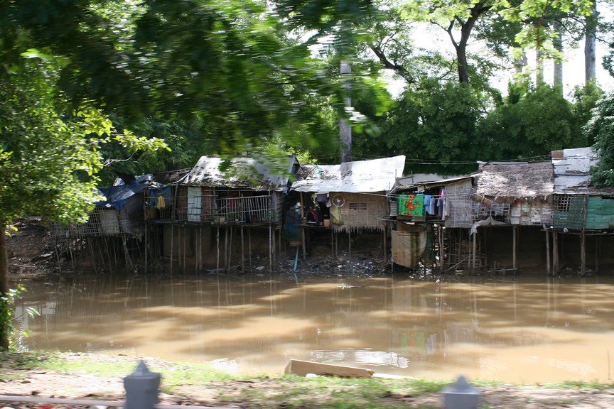 Once we got back into the city there is the river lined with the shacks of the poor.
