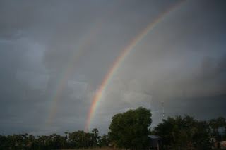 A wonderful, wonderful double rainbow out the window of the bus, an awesome end to a great trip.