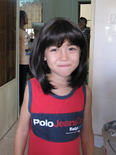 If I had girls this might be what they looked like.  Sister in-law let us try on her wig.