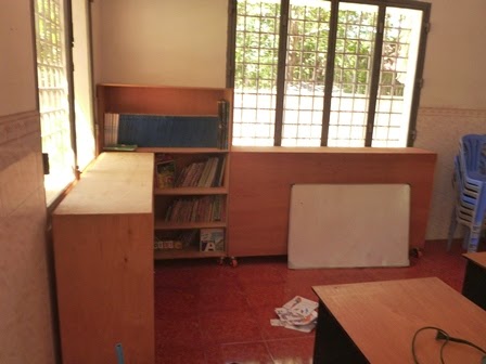 Our now modest Library haven giving the dinosaur over the the Kindergarten class the library is now rotatable shelves in the sanctuary.