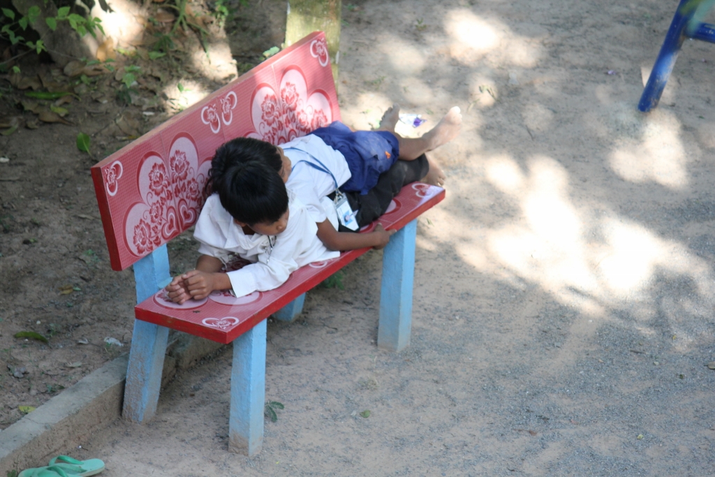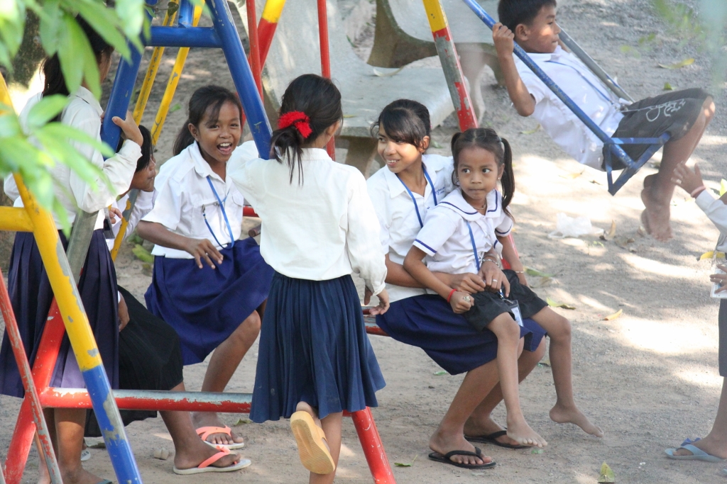 Sorya on the right with the one of the girls on her lap, she is the daughter of a teacher at the other school. She is a very cute little girl that always has a smile to share.