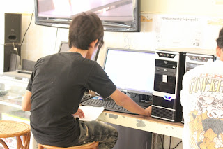 The older boys learning word and Excel, Ly is teaching them.